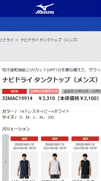 2025年春夏 ミズノ /メンズ タンクトップ