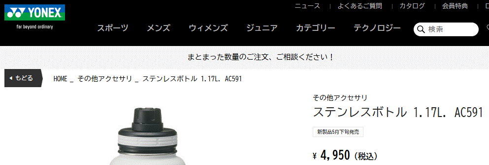 2025年春夏 ヨネックス ステンレスボトル 1.17L