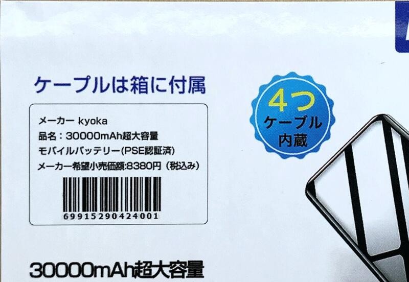商品名:30000mAhモバイルバッテリー