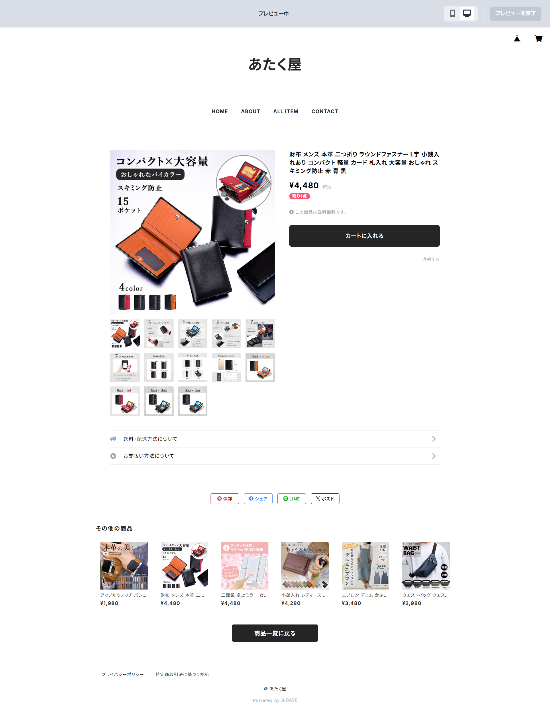 今日商品が届きました。オレンジが鮮やかすぎず落ち着いた色合いで、大変気に入りました。カードの収納ポケットも多く、小銭もお札も取りやすい作りになっていたのが、写真で見るよりかなり高評価な点でした。またリピートすることが有れば、あたく屋さんにお願いしたいです。