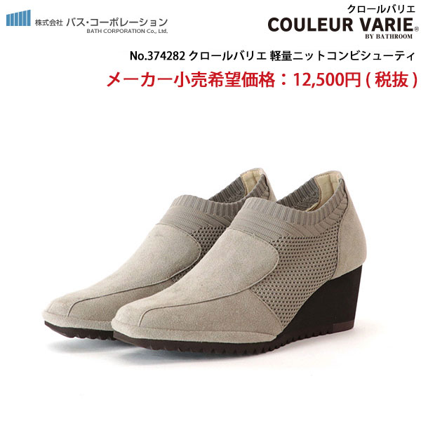 シューティ ウェッジヒール ニット 走れる 痛くない 3E ゆったり 幅広 甲高 外反母趾 超軽量 歩きやすい 軽い クロールバリエ No.374282※返品・交換不可