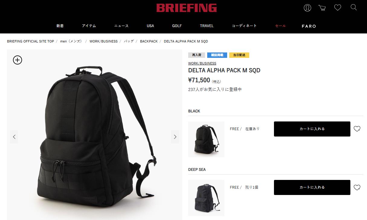 並行輸入 ブリーフィング リュックサック デルタ BRA231P37