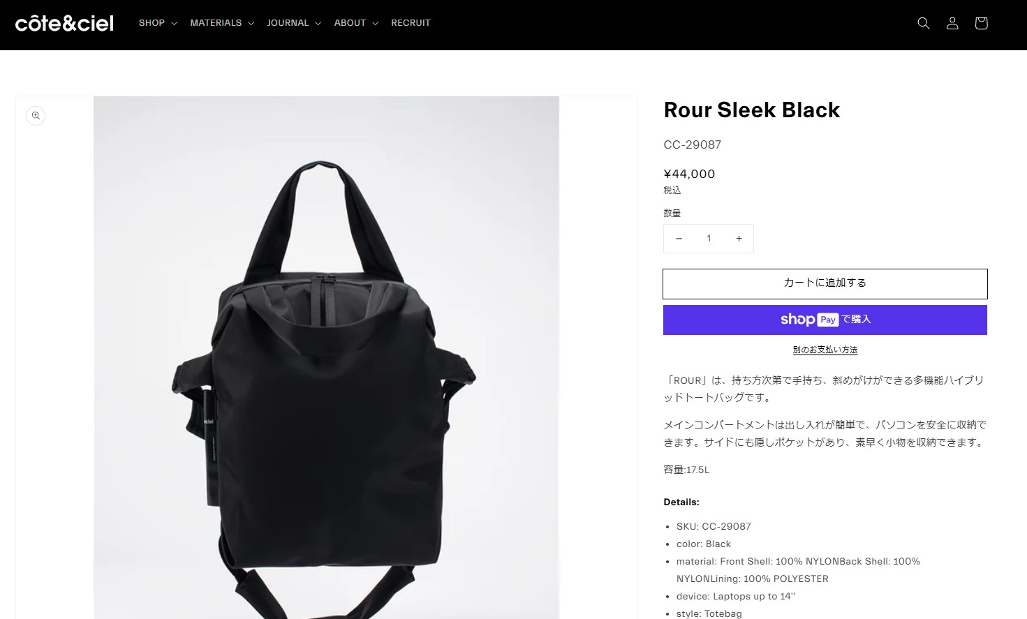 コートエシエル トートバッグ ロール 29087 ブラック 黒