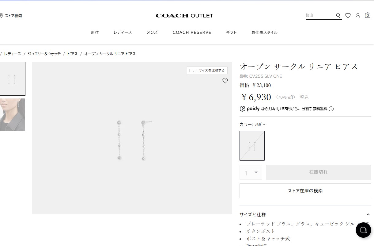 コーチ アウトレット ピアス オープン サークル ステーション CV