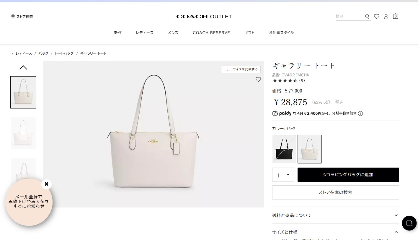 コーチ アウトレット トートバッグ クロスグレイン CV402 IMCHK