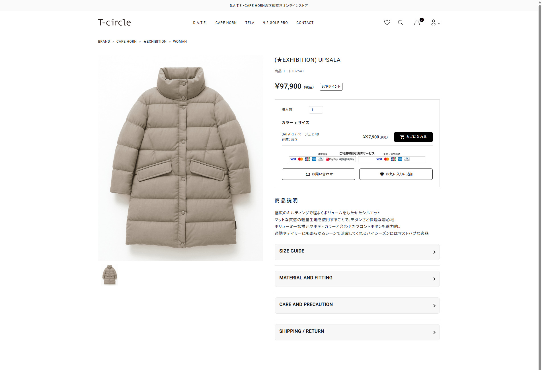 並行輸入 ケープホーン ダウンジャケット ウプサラ B2541