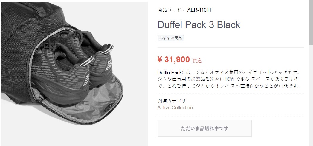 無地 コーデュラナイロン 16インチ 21.4L パススルー 撥水 2WAY シンプル カジュアル リュックサック ACTIVE COLLECTION Duffel Pack 3 全国送料代引手数料無