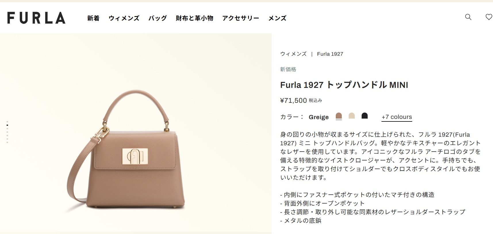 フルラ ハンドバッグ 1927 WB00109 ARE000 1257S 1 007 ベージュ