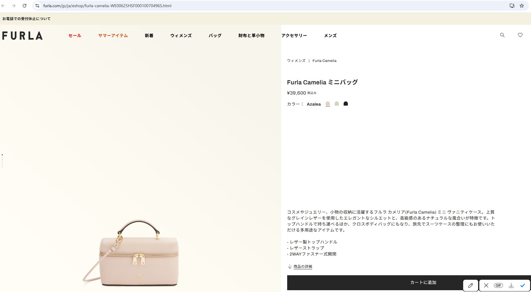 並行輸入 フルラ ショルダーバッグ カメリア WE00625 HSF000 0496S 1 007