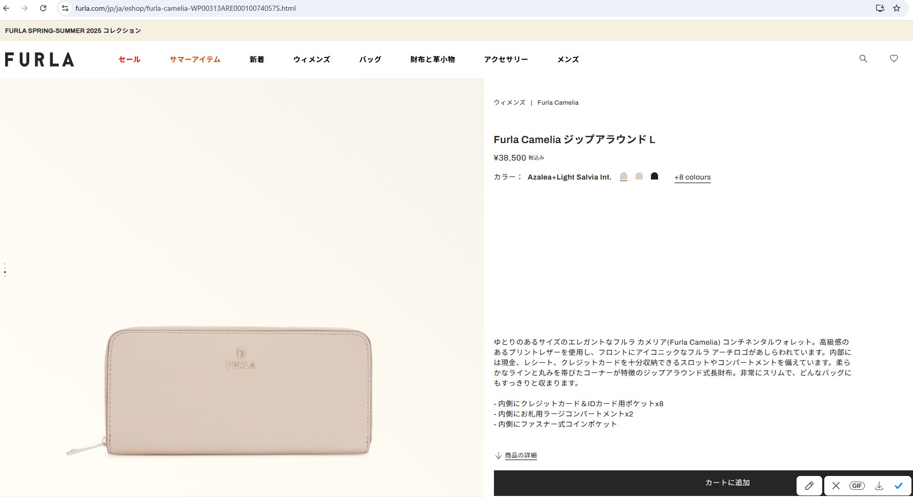 並行輸入 フルラ 長財布(ラウンドファスナー) FURLA カメリア WP00313 ARE000 4057S 1 007レディース ベビーピンク