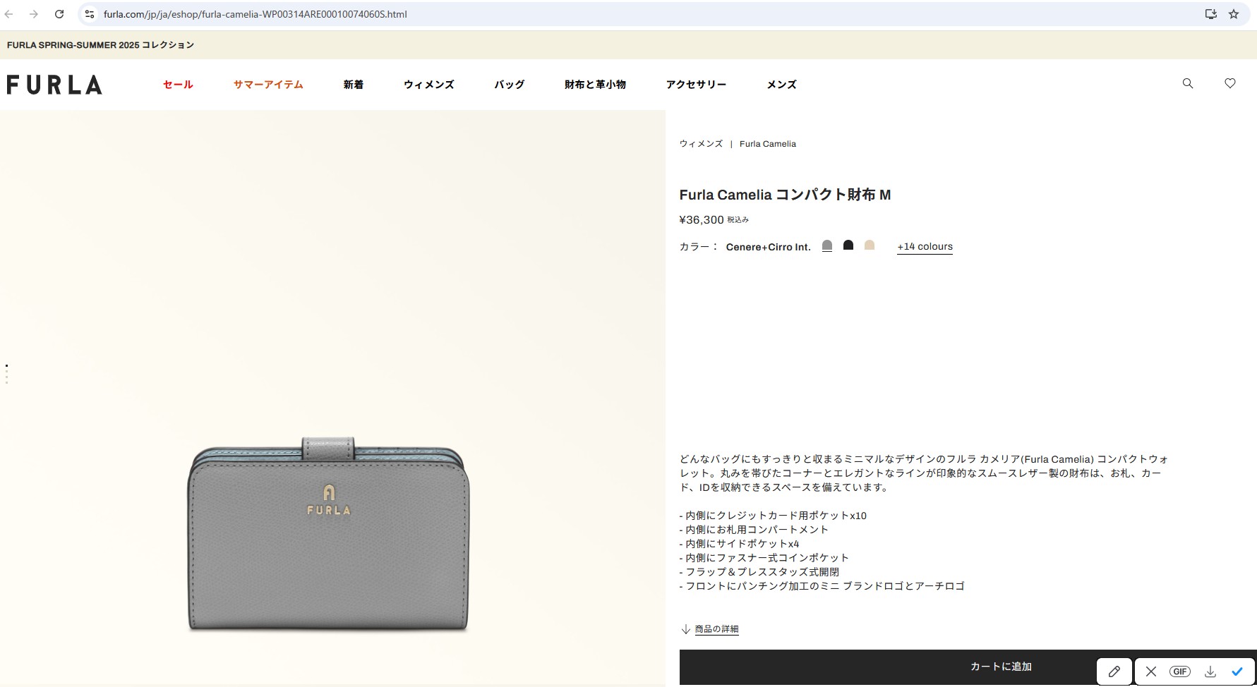 並行輸入 フルラ 2つ折り財布 FURLA カメリア WP00314 ARE000 4060S 1 007レディース グレー 灰色