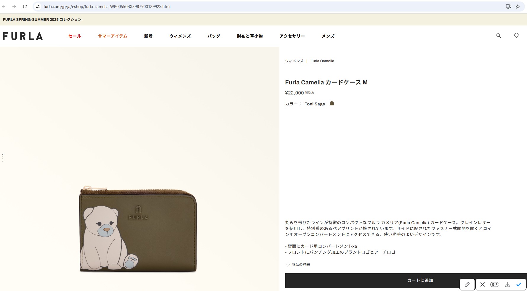 並行輸入 フルラ カードケース FURLA カメリア WP00550 BX3987 2992S 9 001レディース カーキ