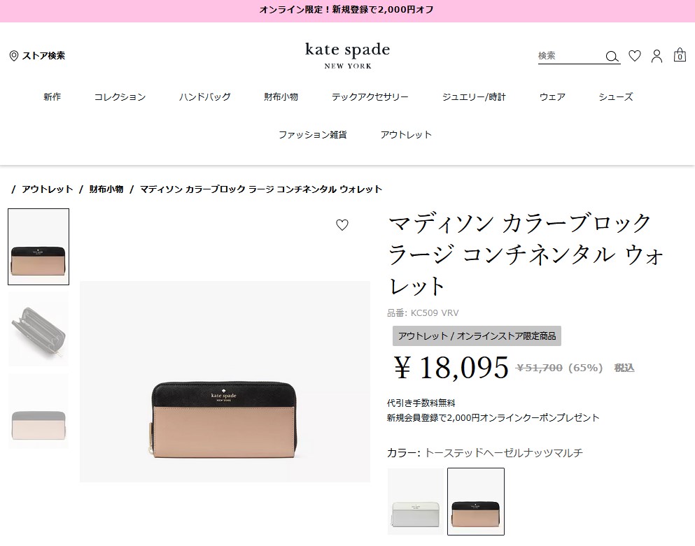 ケイトスペード 長財布 マディソン KC509 200 ベージュ ブラック