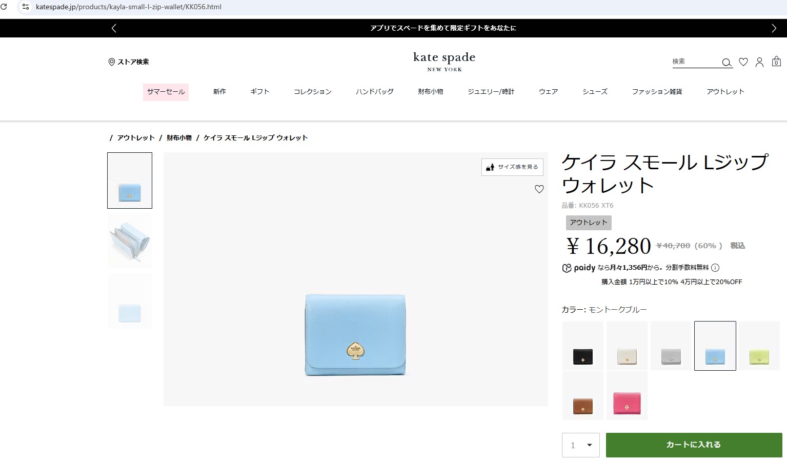 ケイトスペード 2つ折り財布 ケイラ KK056 404 ライトブルー 水