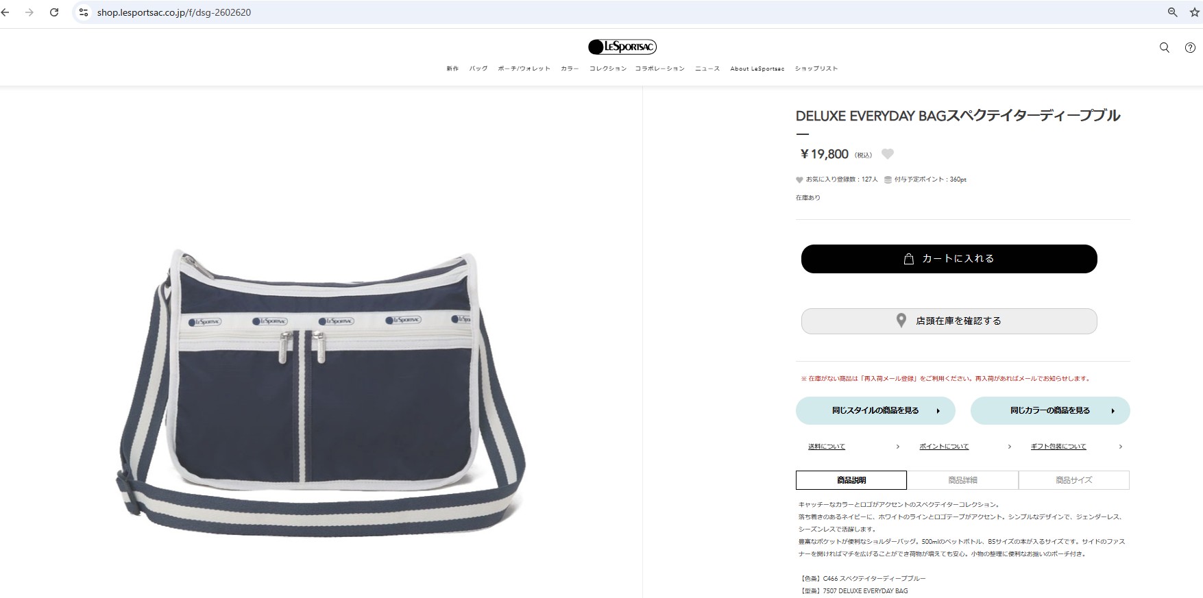 並行輸入 レスポートサック ショルダーバッグ LeSportsac デラックスエブリデイ 7507 C466レディース ネイビー 紺