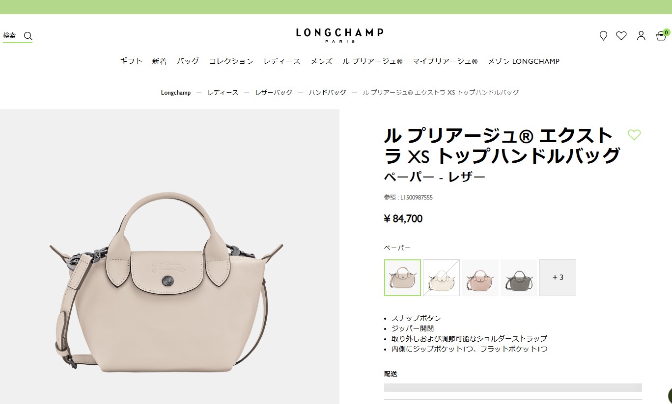 高品質なレザーを使用した「ル プリアージュ エクストラ」トップハンドルバッグ。美しいシボ加工がレザーに施され、引手がブランドを象徴する騎手とホースのデザインになっているなど、細部にブランドアイテムならではのこだわりが感じられます。必要最小限が収納できるコンパクトなサイズ感。ストラップが付属した2WAY仕様も嬉しいポイントです。