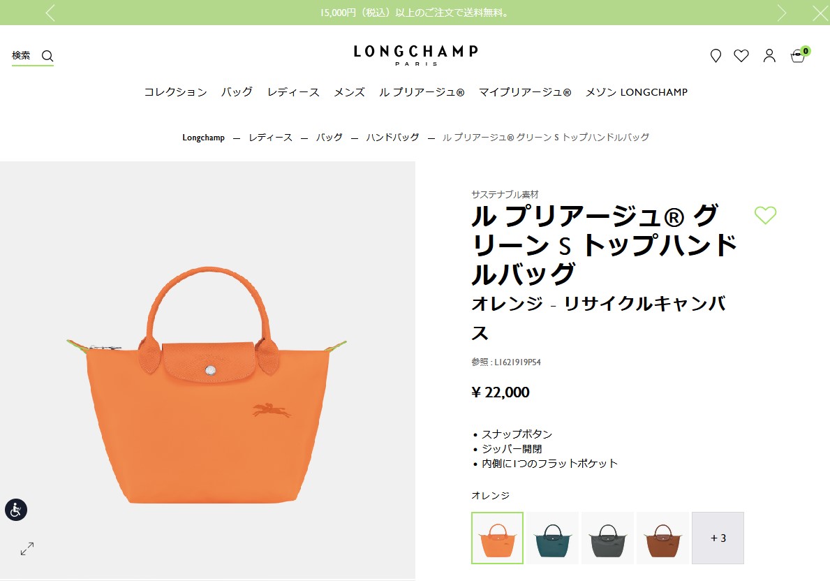 並行輸入 ロンシャン ハンドバッグ LONGCHAMP ル プリアージュ グリーン トップハンドルバッグ Sサイズ 1621 919 P54レディース オレンジ