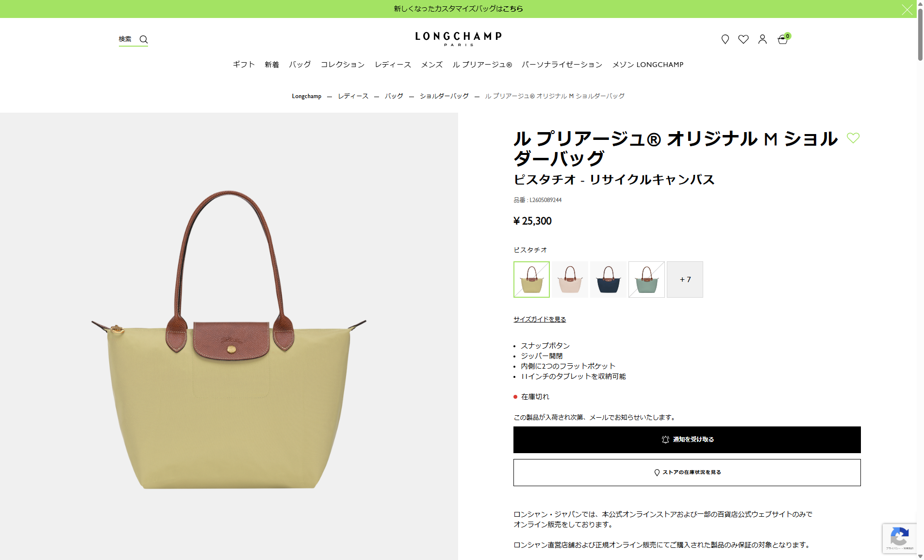 並行輸入 ロンシャン トートバッグ ル プリアージュ オリジナル ショルダーバッグ Mサイズ 2605 089 244
