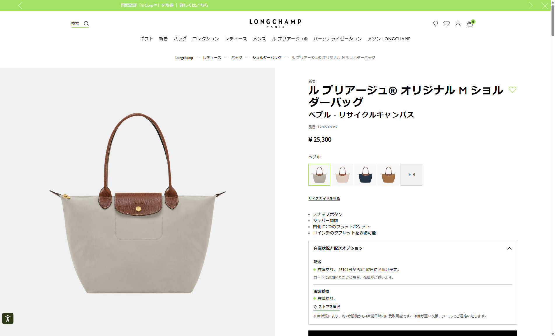 ロンシャン トートバッグ ル プリアージュ オリジナル 2605 089
