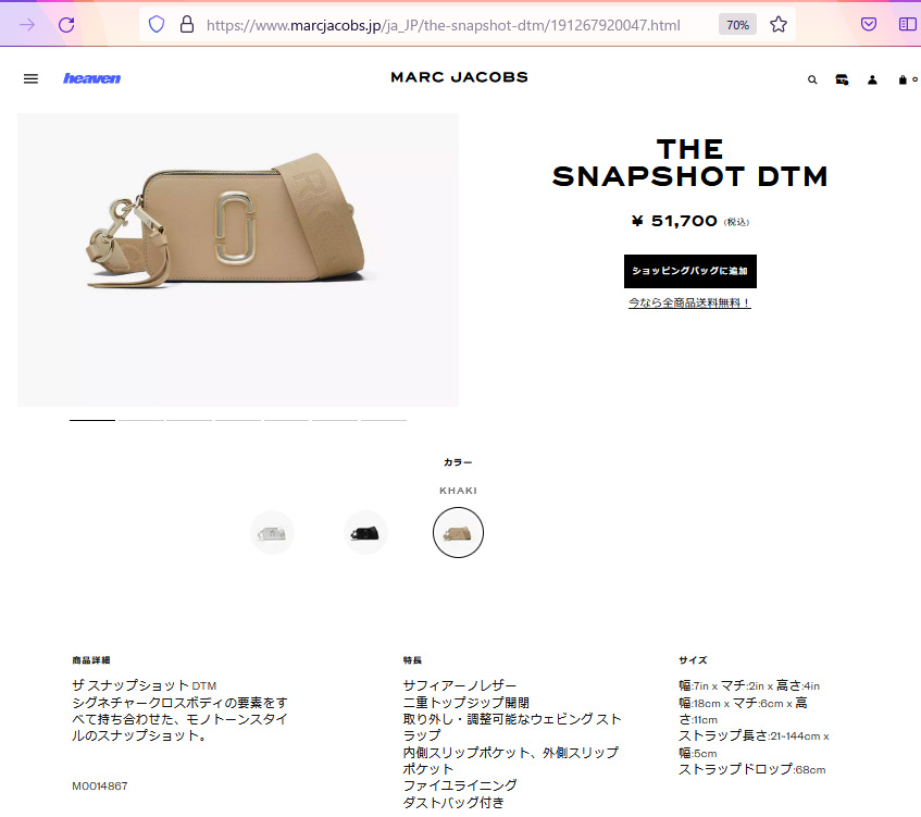 マークジェイコブス ショルダーバッグ スナップショット M001486
