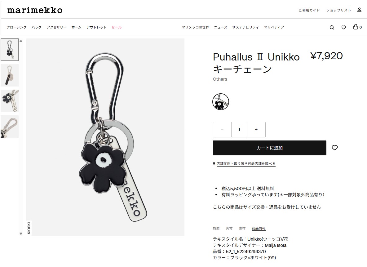 並行輸入 マリメッコ キーホルダー Marimekko プッルッス ウニッコ キーチェーン 093370 910レディース ブラック 黒 ホワイト 白