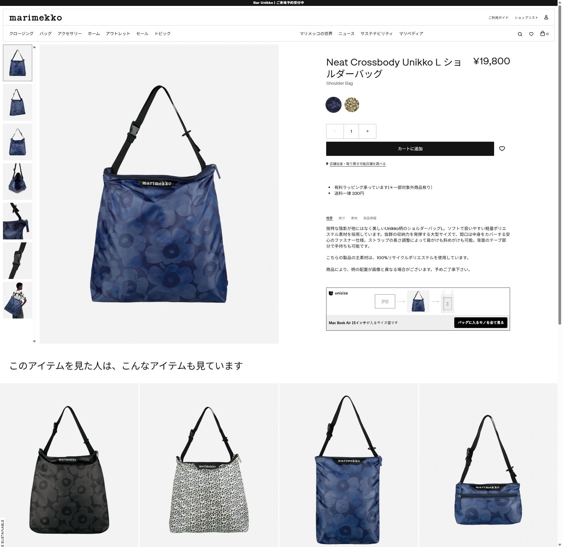 並行輸入 マリメッコ トートバッグ ウニッコ NEAT CROSSBODY L 094576 828