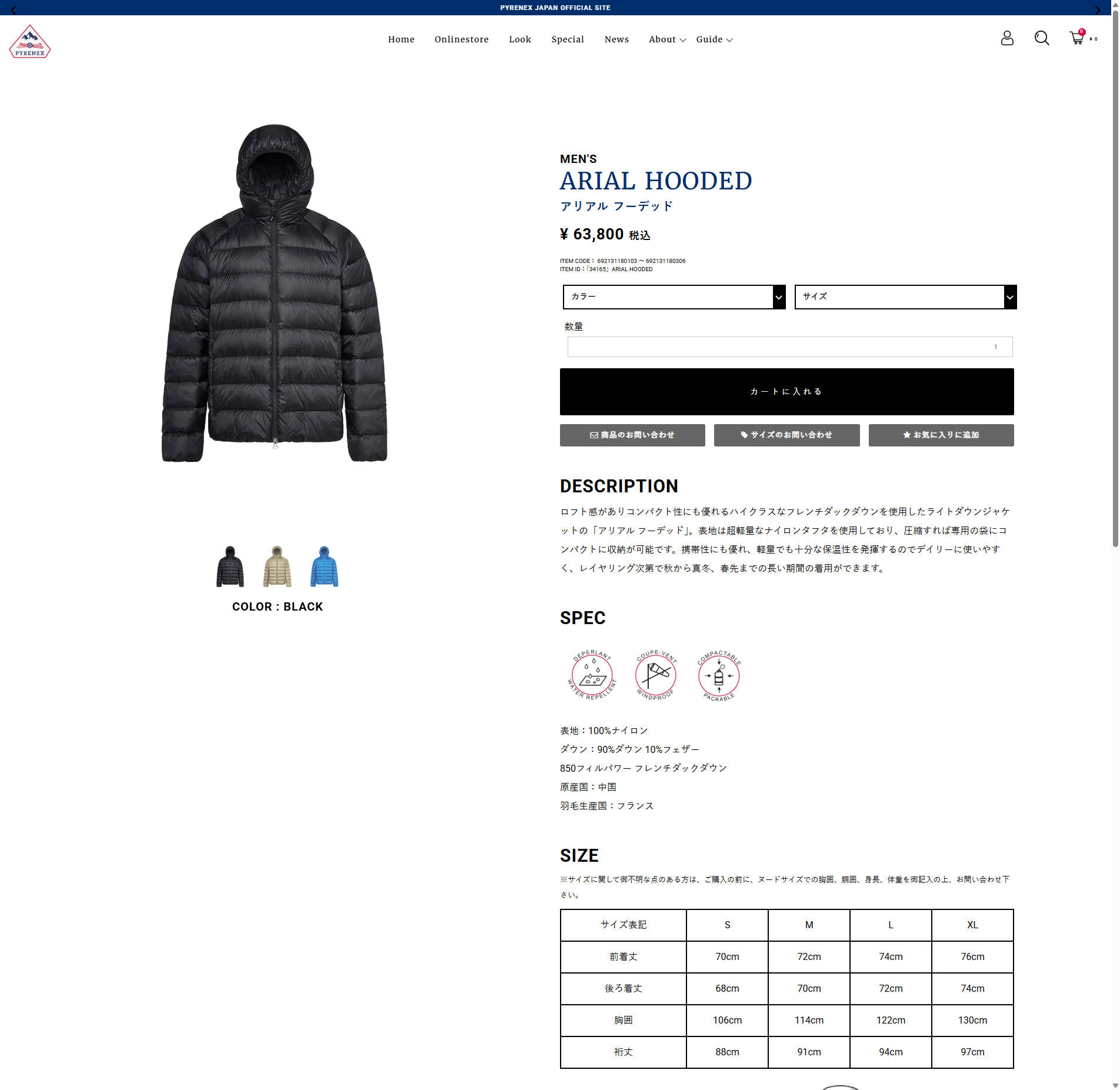 並行輸入 ピレネックス ダウンジャケット PYRENEX アリアル フーデッド HMY026 Pメンズ