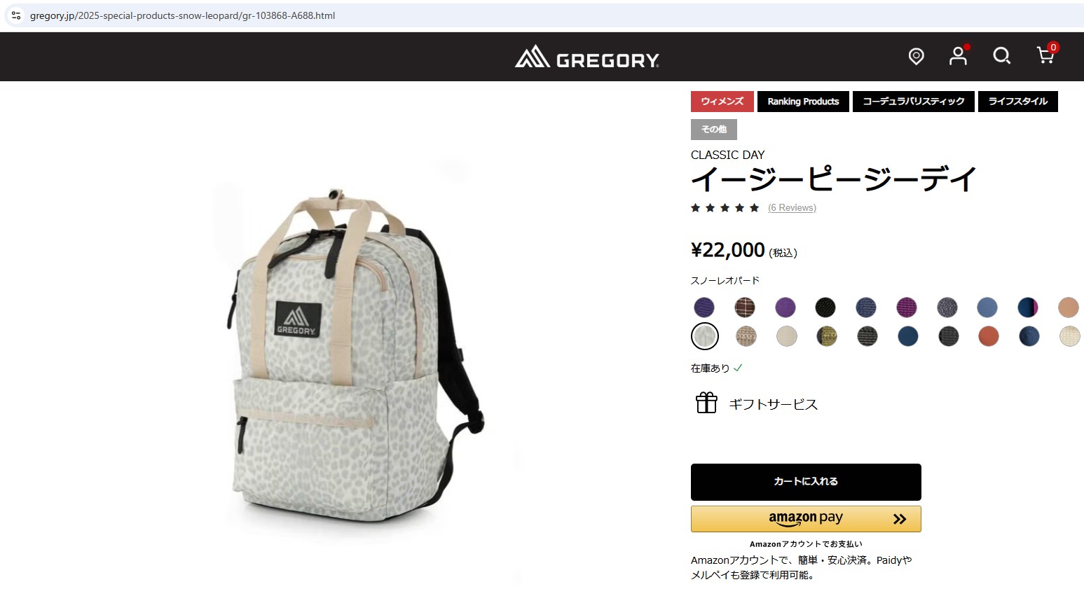 グレゴリー リュックサック クラシック 103868 A688 グレー 灰色