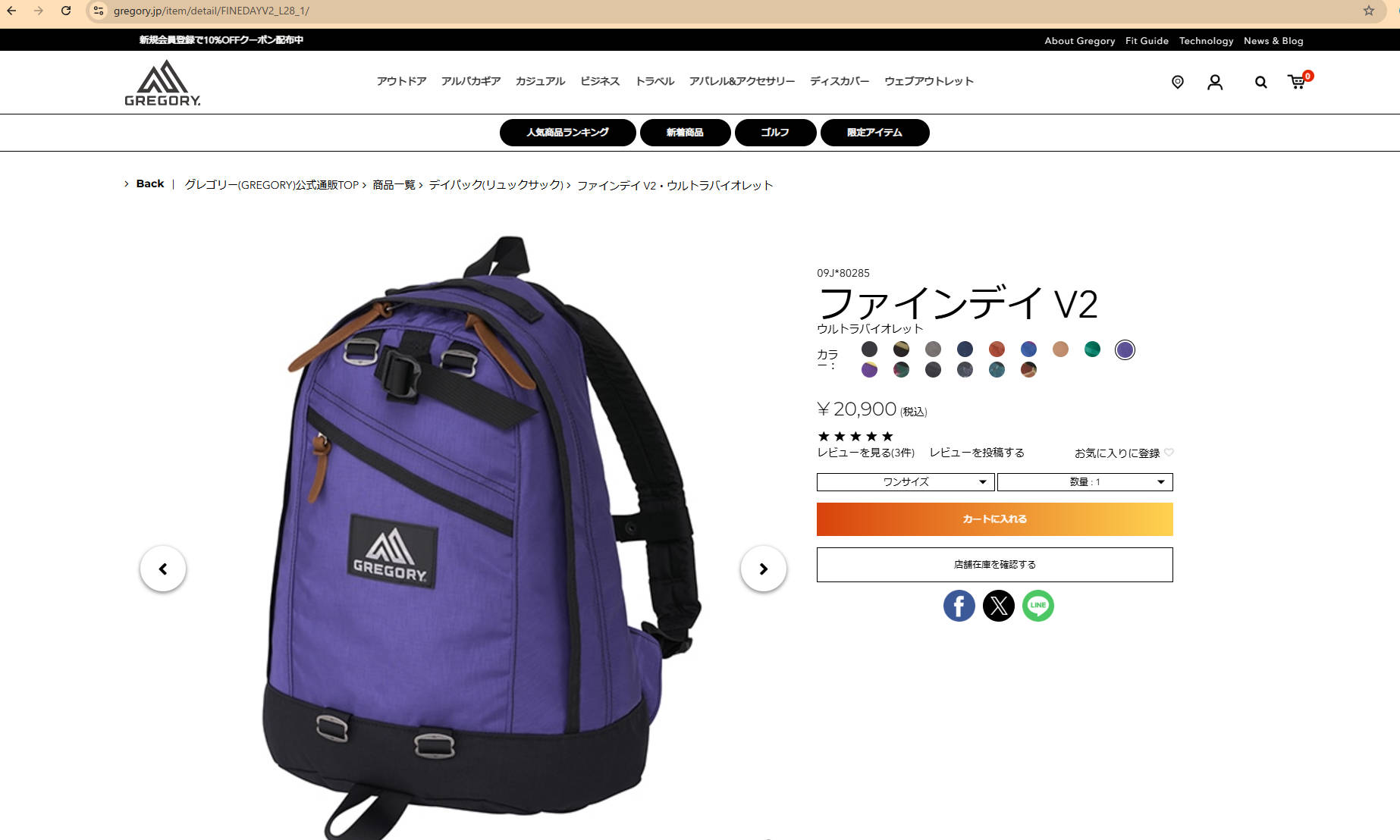グレゴリー リュックサック クラシック 137539 1888 パープル 紫