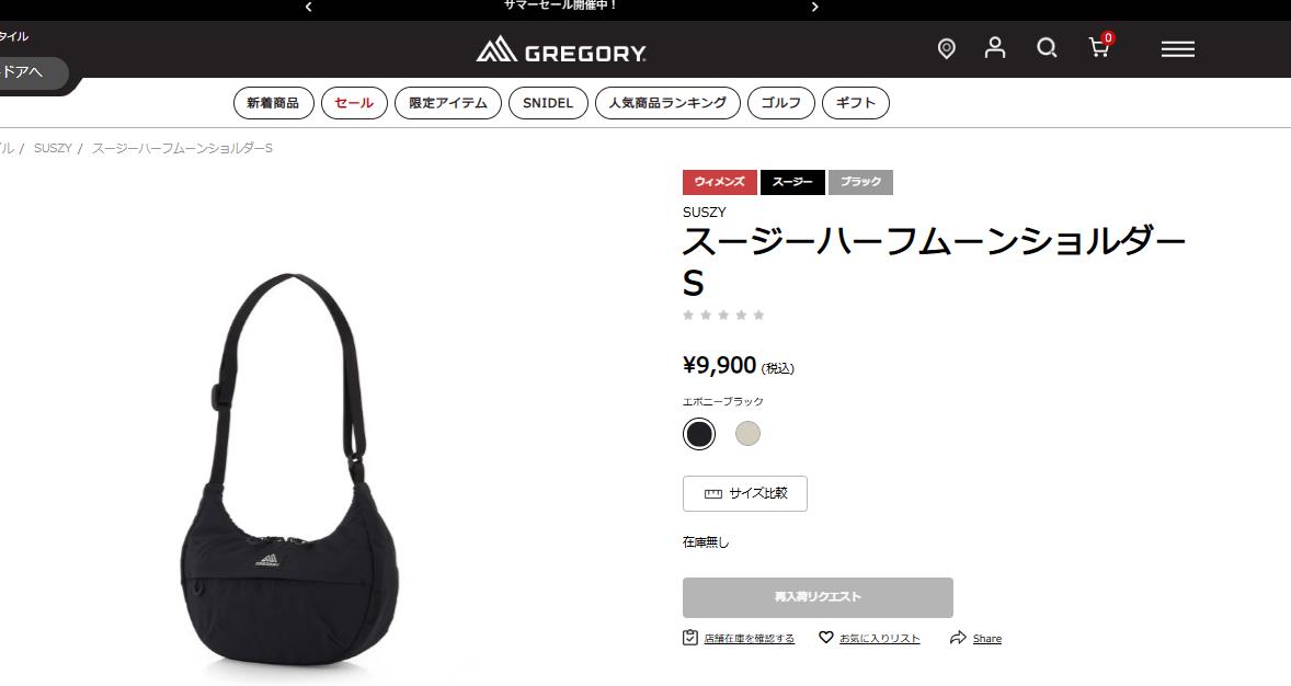 グレゴリー ショルダーバッグ スージー 153979 1318 ブラック 黒