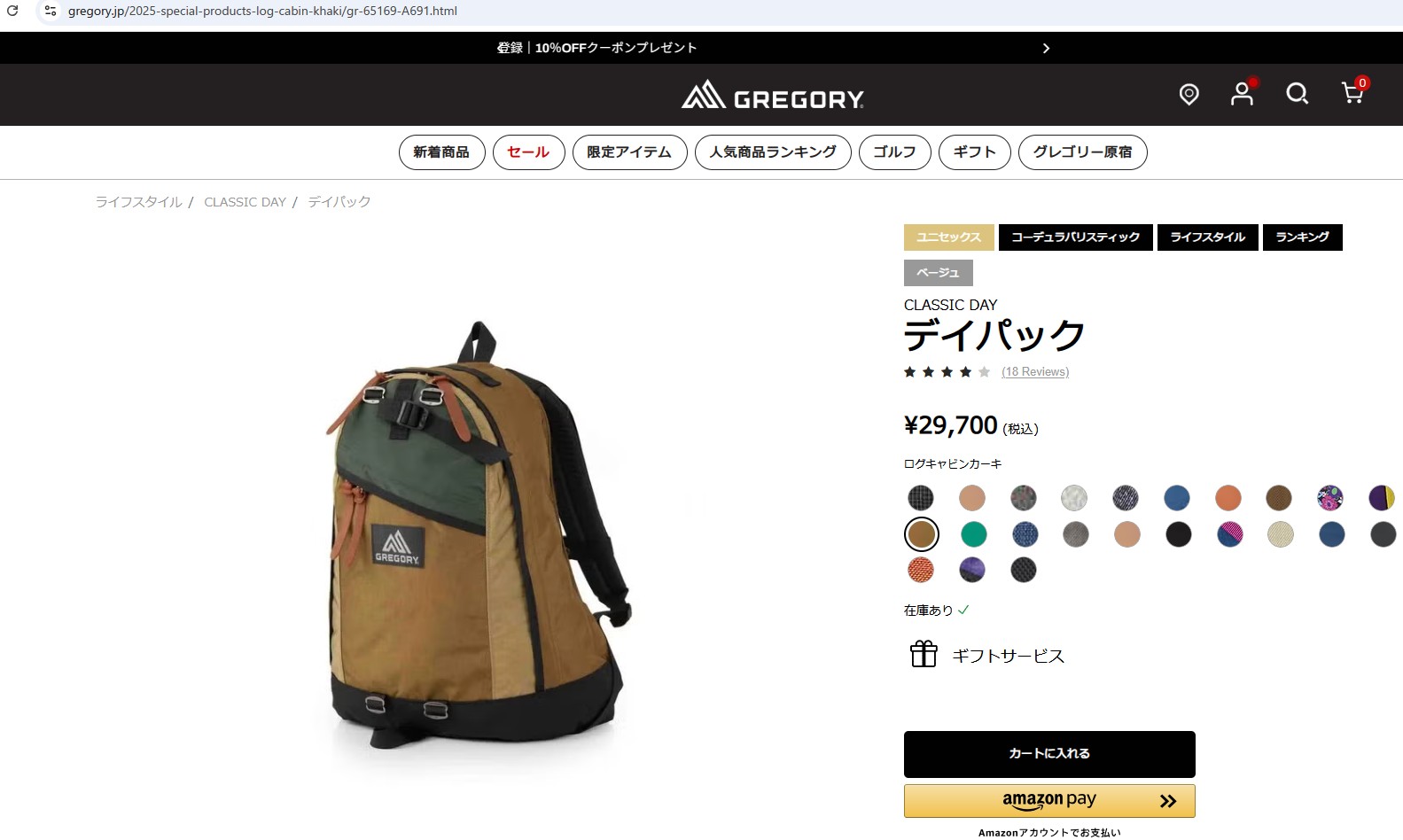 グレゴリー リュックサック デイパック 65169 A691 ブラウン 茶