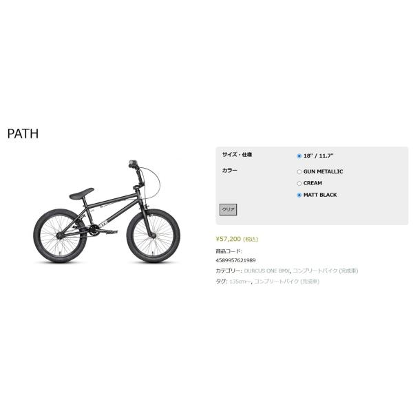 18インチBMX DURCUS ONE KIDS PATH 18 Ver1 / MATT BLACK ダーカスワン パス ストリート BMX