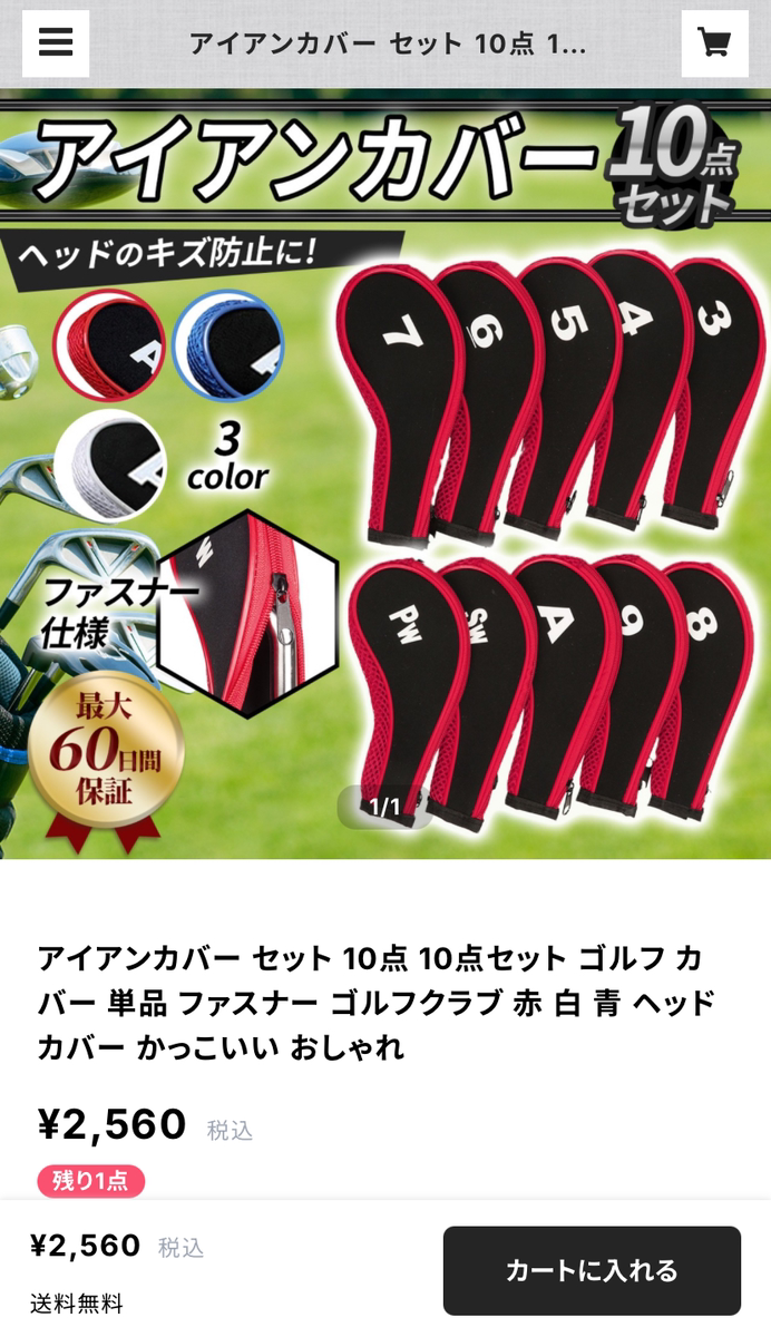 今回ゴルフバックがネイビー色になったので青色を購入しました。 とてもコスパが良くチャックが壊れたり、カバー破れて来ますが4年以上は保ちます。 今回で3セット目になります。 3番からアプローチ、サンドまで10枚あるのもお勧めです。