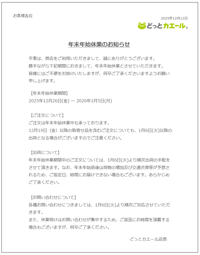 ストアからのお知らせ
