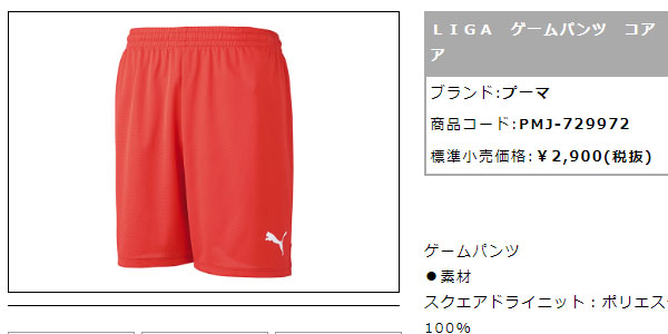 サッカーやフットサルにおすすめ、ジュニア用ゲームパンツです。