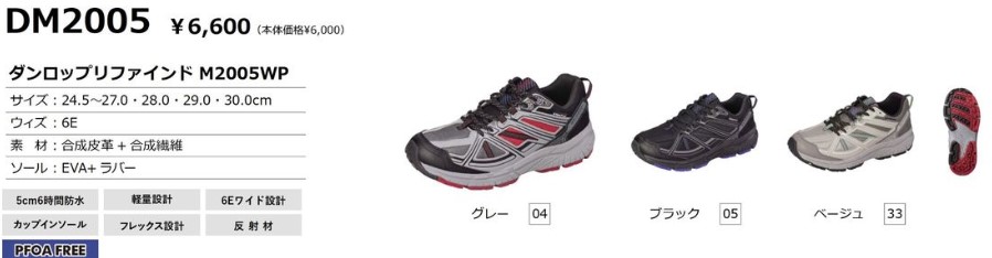ダンロップリファインドの防水機能シューズより、超幅広のなんと6E設計ワイドラストタイプです。