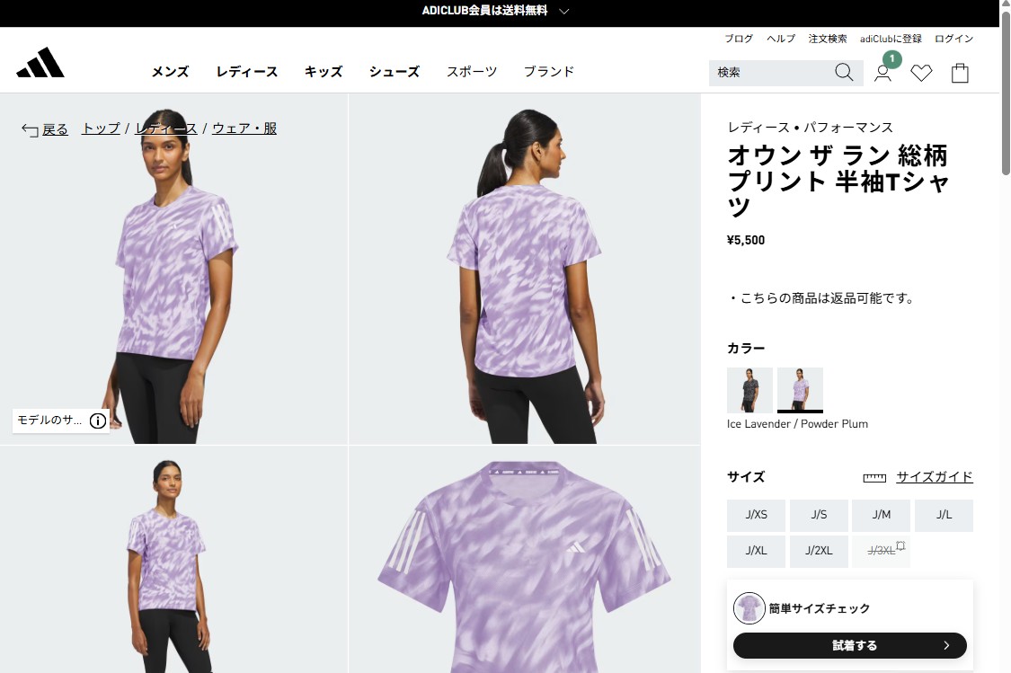 爆買 アディダス レディース ランニング半袖Tシャツ マラソン 陸上 ランナー 女性 トレーニング スポーツウェア ラベンダー adidas P0437