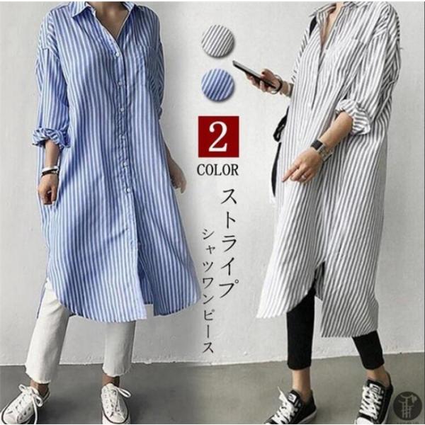 シャツワンピース レディース 長袖 薄手 夏 長袖 ストライプシャツ 紫外線対策 ロングシャツおトク53%OFF価格2,780円
