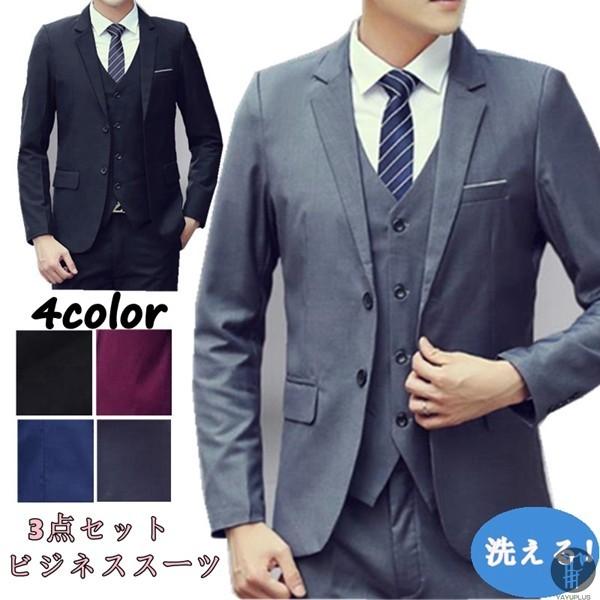 3点セット ビジネススーツ メンズ スリーピース セットアップ スリムスーツ ビジネス 礼服 冠婚葬祭 スリム 大きいサイズ フおトク51%OFF価格7,980円