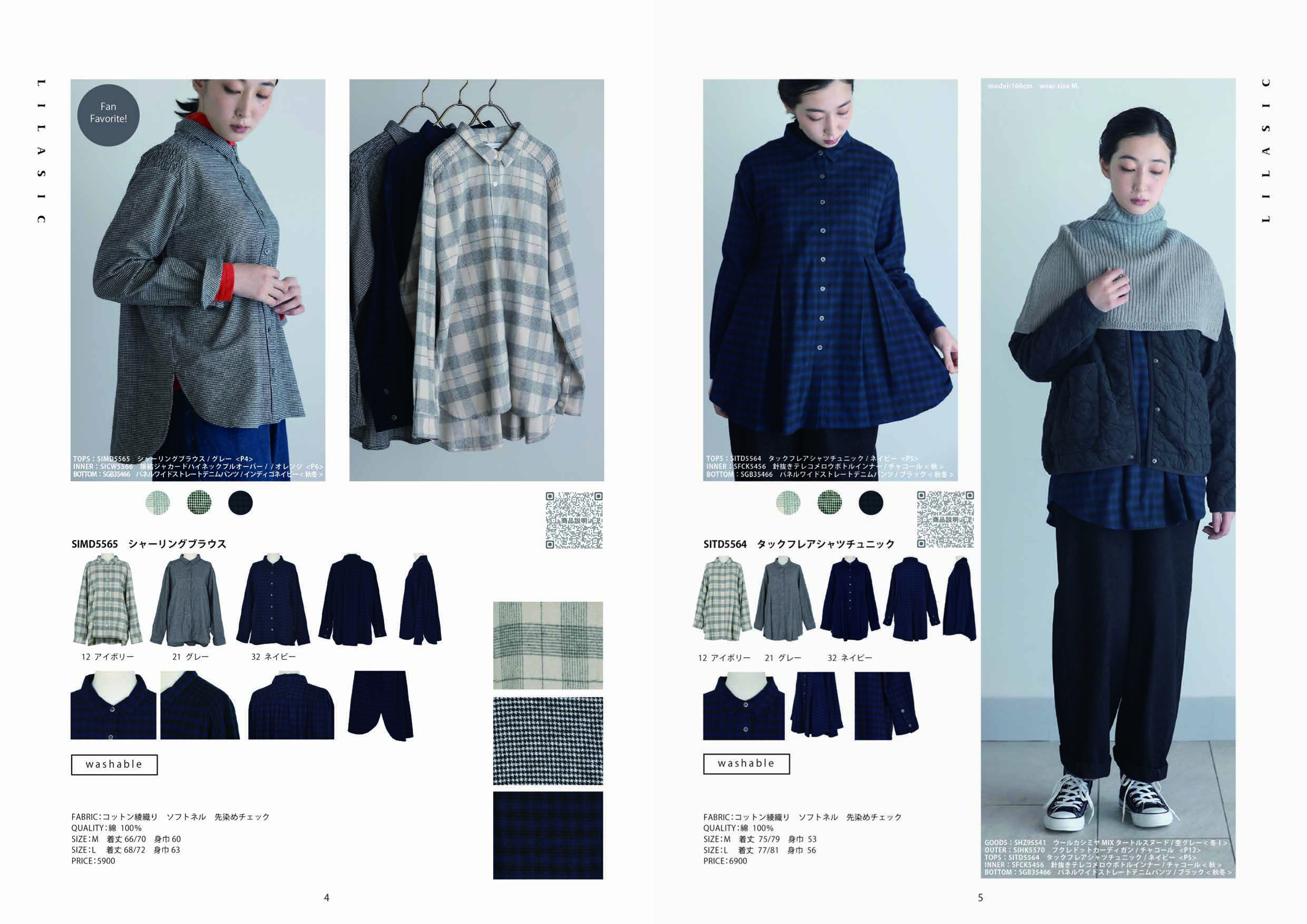 リラシク LILASIC シャーリング ブラウス シャツ レディース ソフトネル 長袖 無地 チェック トップス 綿100% M便 不可]