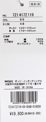 48:【L】胸囲111 肩幅47 着丈69