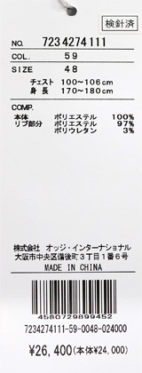 リブ部分ポリエステル97%・ポリウレタン3%