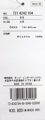 46:【M】ウエスト78cm〜84cm 股上27.5cm ワタリ32cm 裾幅24cm 総丈55.5cm(ba298)