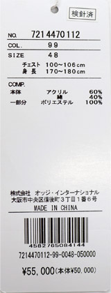46:【M】肩幅44 胸囲112 着丈65 袖丈62