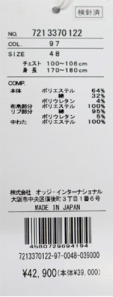 本体:ポリエステル64% 綿32% ポリウレタン4%