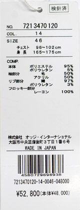 50:【LL】肩幅50 胸囲124 着丈72 袖丈65.5