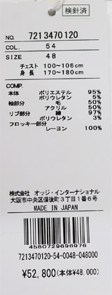 袖部分:ウール50% アクリル50%