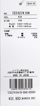 リブ部分・綿98%・ナイロン2%