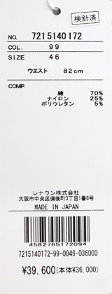 裾上げ加工後、返品・交換はお受けできません