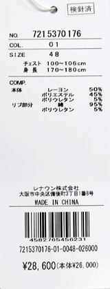 本体・レーヨン50%・ポリエステル45%・ポリウレタン5%